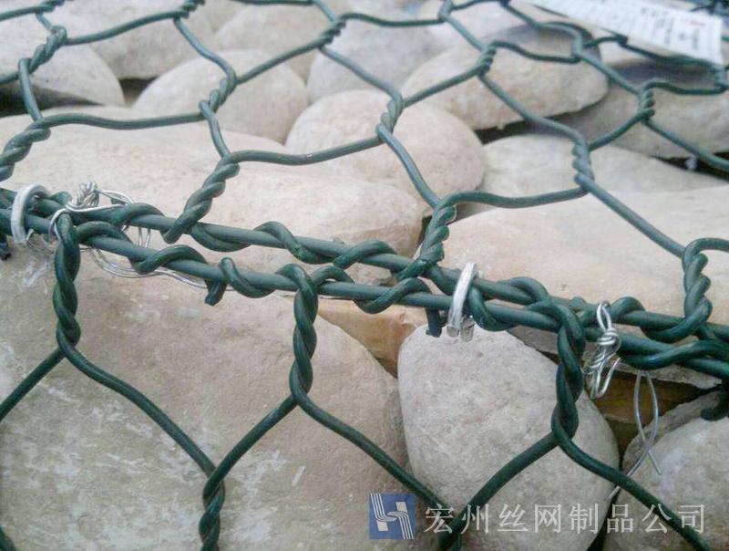 (3)鍍鋅鋼絲包塑:優(yōu)質(zhì)低碳鋼絲,在鋼絲的表面包一層PVC保護(hù)層,再編織成各種規(guī)格的六角網(wǎng)。這層PVC保護(hù)層將會(huì)大大增加在高污染環(huán)境中的保護(hù),并且通過(guò)不同顏色的選擇,使其能和周圍環(huán)境融合。